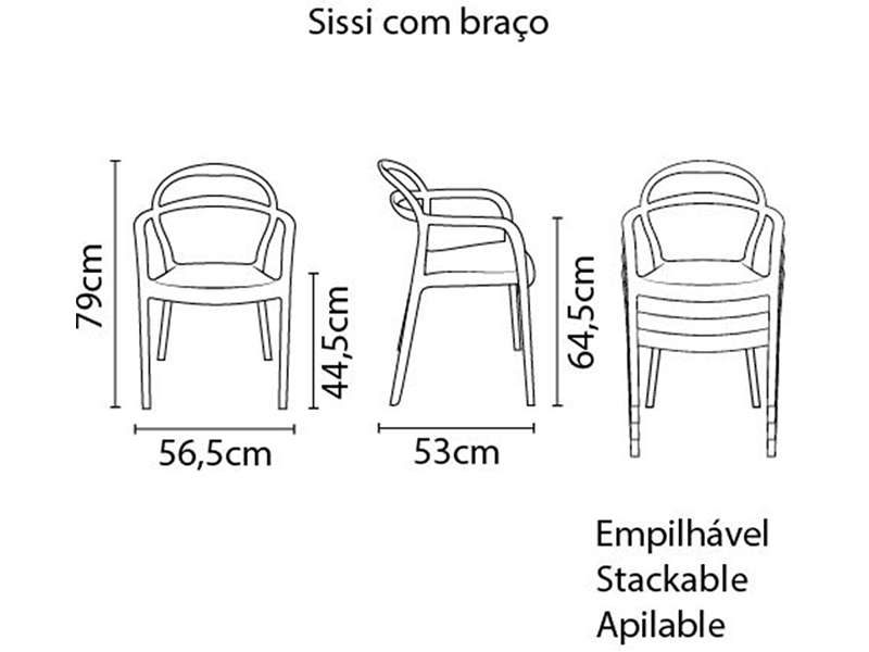 طول 53، عرض 56 و ارتفاع نشیمن 45.4 و ارتفاع تا پشتی 80 سانتی متر-وزن: 2.5 کیلوگرم